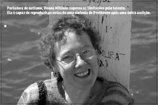 Dona wiliams superou suas limitações e hoje é capaz de tocar uma sonfonia ouvindo a melodia uma unica vez.